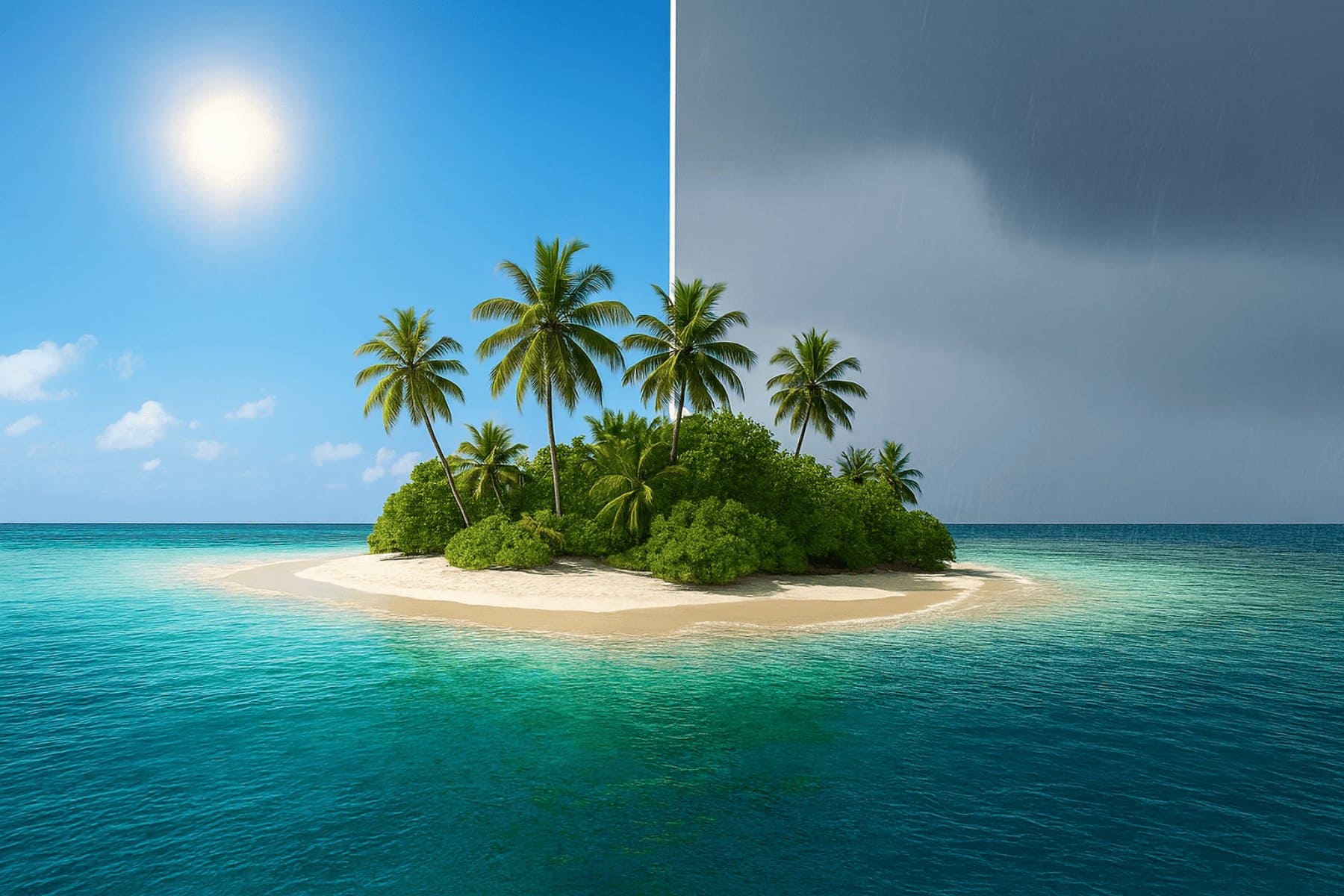 The Maldives has a tropical climate shaped by the Indian Ocean monsoon system. Instead of four seasons, the year is divided into two main ones:
